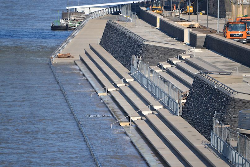 In köln steigt der pegelstand. Die treppen am rheinboulevard werden überschwemmt. Rheintreppen am rheinboulevard in köln deutz unter wasser. Überschwemmte uferbereiche, eingeschränkte schifffahrt und weiter steigende pegelstände drohen dem rheinland am wochenende. Januar) mit 6,20 metern die hochwassermarke 1 erreicht.